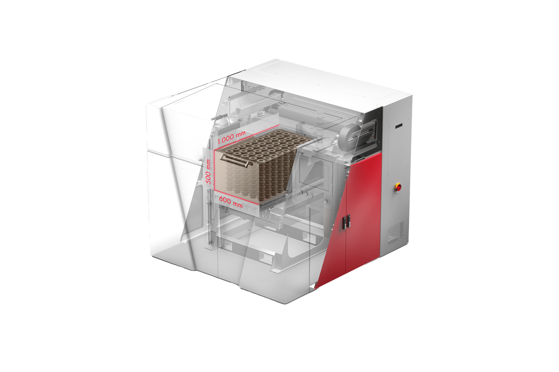 The VX1000 is a space saver. The building volume of 1000 x 600 x 500 mm of the VX1000 can be optimally utilized for optimized unit costs. The components are printed in a powder bed and they are automatically stabilized and fixed by unbound powder. The VX1000 can reliably produce even the most filigree component geometries with optimized reject rates.