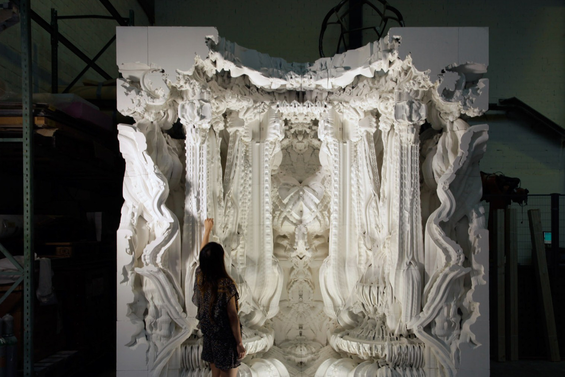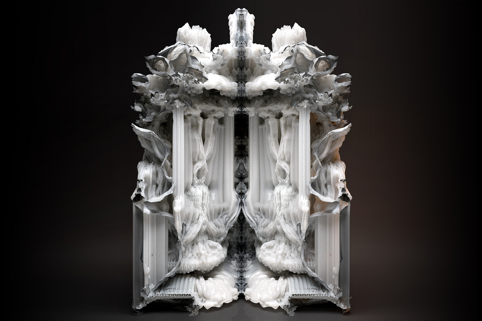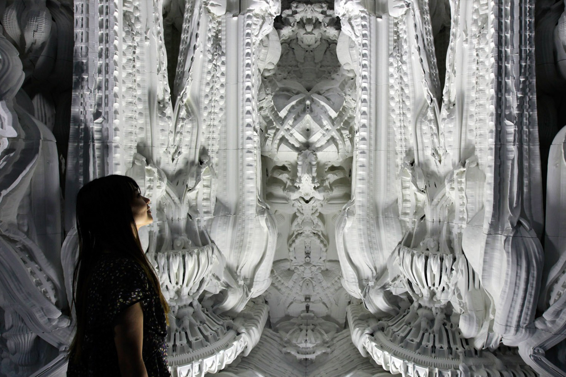 Digital Grotesque is the first fully immersive, solid, human-scale, enclosed structure that is entirely 3D printed out of sand by voxeljet. This structure, measuring 16 square meters, is materialized with details at the threshold of human perception. Every aspect of this architecture is composed by custom-designed algorithms.