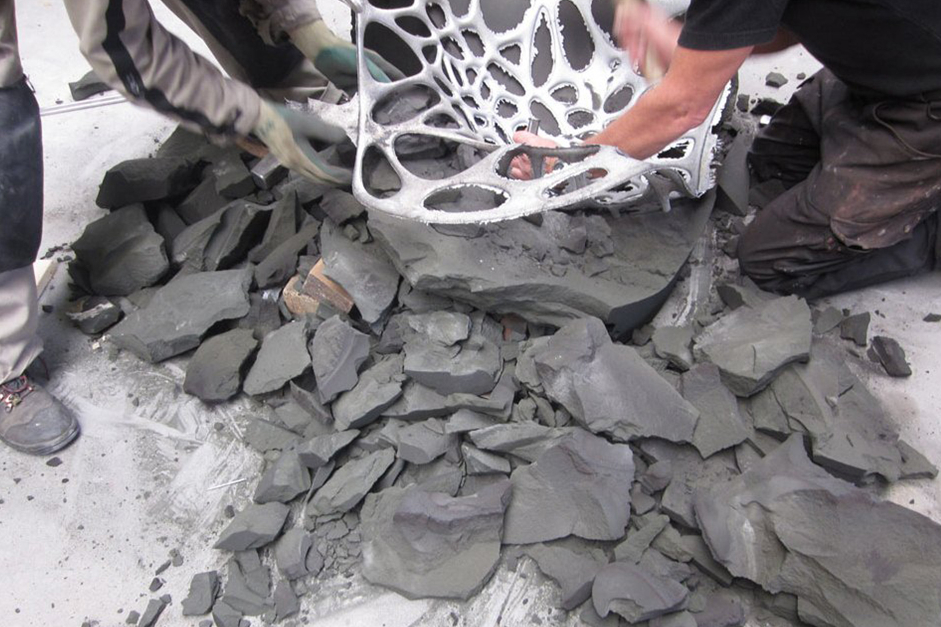 The largest mold part measured 1,105 x 713 x 382 millimeters – a size easily handled by voxeljet’s high-performance printers. The largest voxeljet 3D print systems can accommodate shapes with a maximum volume of eight cubic meters. The chair production process places great demands on 3D printing and the cast, as the design consists of a very thin-walled aluminum cast structure. The casting process is followed by grinding and polishing work, before a high-quality varnish is applied to the Batoidea chair.