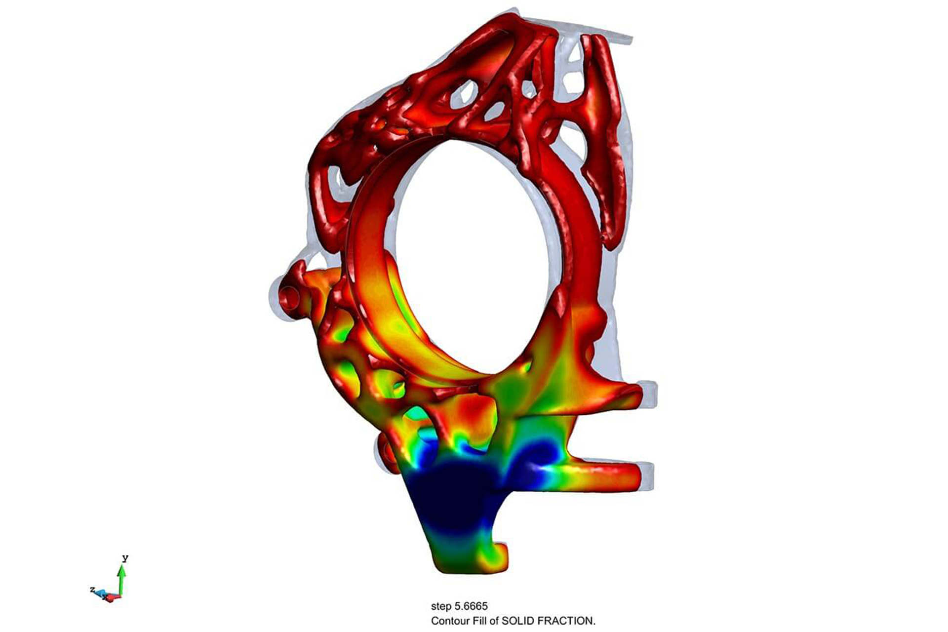 The casting simulation was run twice—at the beginning and end of the design process. In the early phase, this enabled the designers to test and optimize the manufacturability of the component design. They were thus also able to avoid internal damage and analyze critical areas while simultaneously reducing iterations between the design and development departments. The filling and solidification processes were then simulated once again at the end of the design Phase.