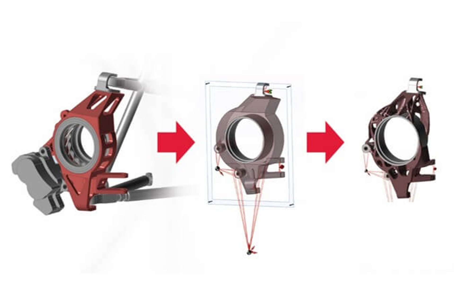 The individual steps involved in efficiently optimizing the wheel trunk through simulation and 3D printing are described below. The investment casting molds required for the component were produced by voxeljet using the Binder Jetting 3D printing process. Because 3D printing allowed for structure optimization and nearly unlimited design freedom in making the mold, the performance could be greatly improved.