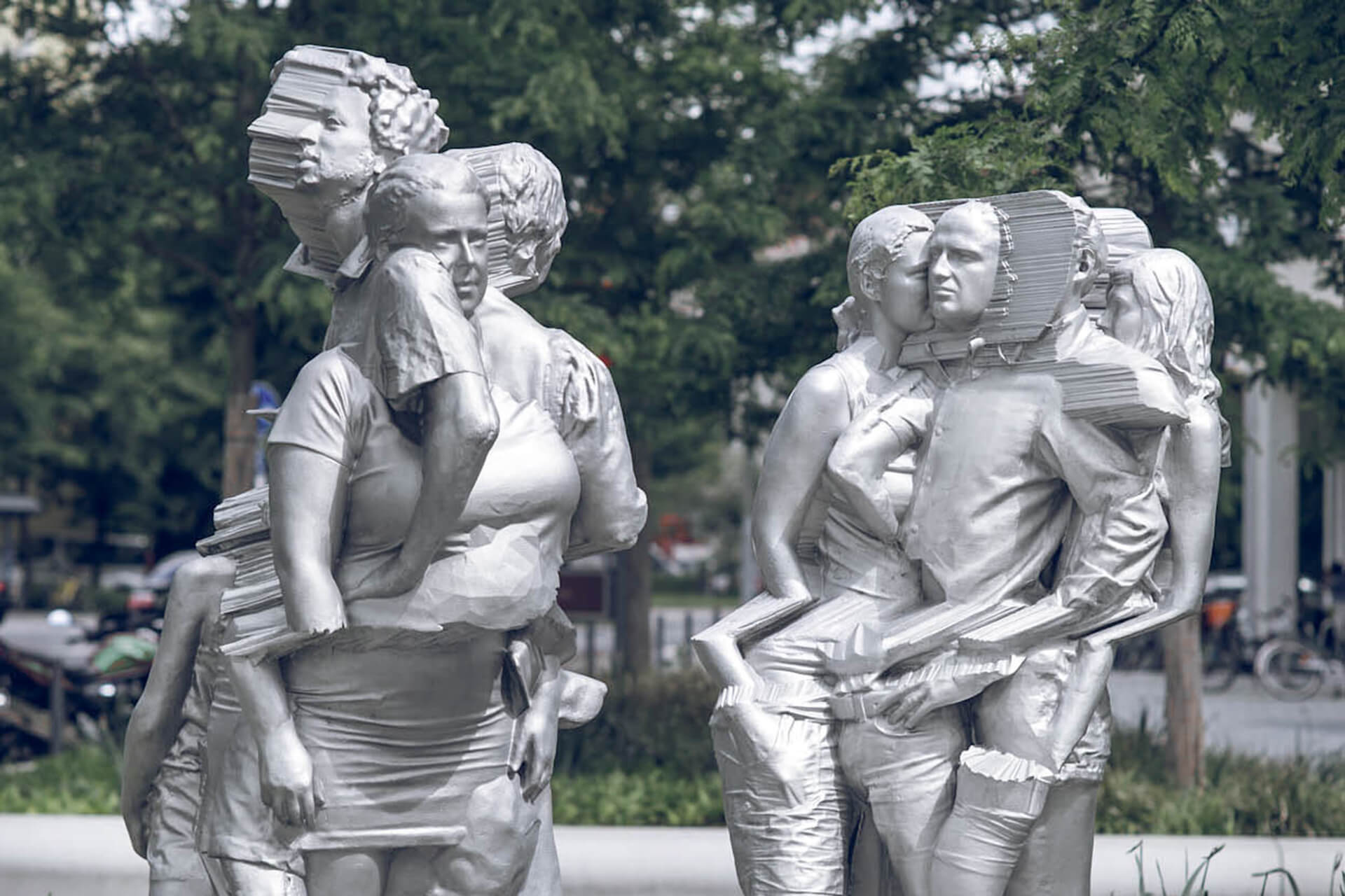 voxeljet, Friedberg near Augsburg, November 2017 – With “Westpark Clouds”, a life-size sculpture group, Fabian Hesse and Mitra Wakil created an artistic work for a public space in the Munich residential area Westpark. Westpark Clouds shows a two-part group of figures, developed from the manipulated and processed 3D scans of the newly recruited residents.