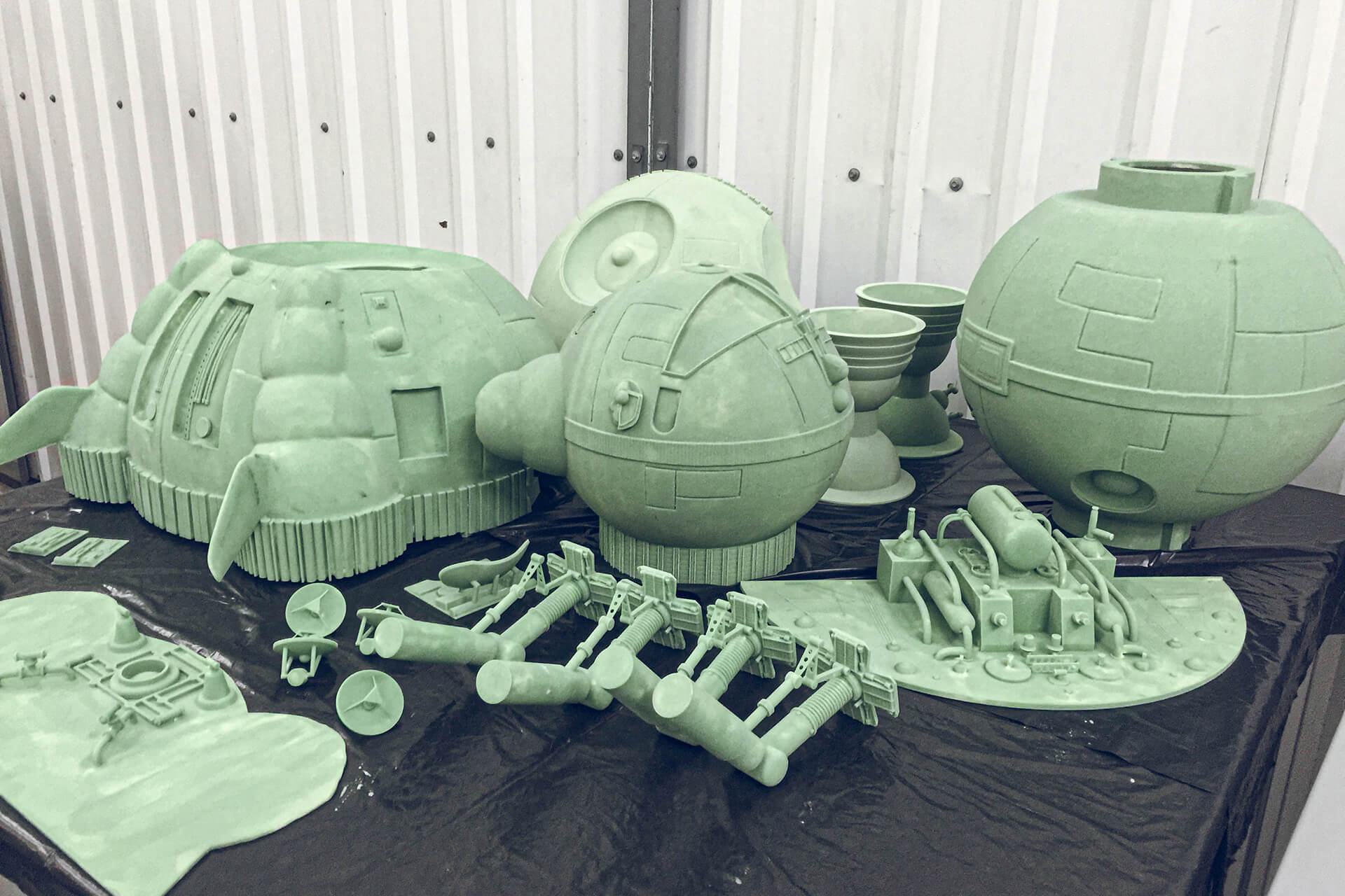 In production terms, the scale model of Starbug needed to be strong enough to withstand several crashes while being used on set. We approached the team at Red Dwarf to discuss a possible solution to preserve their ‘hero’ Starbug from sustaining any damage at all.