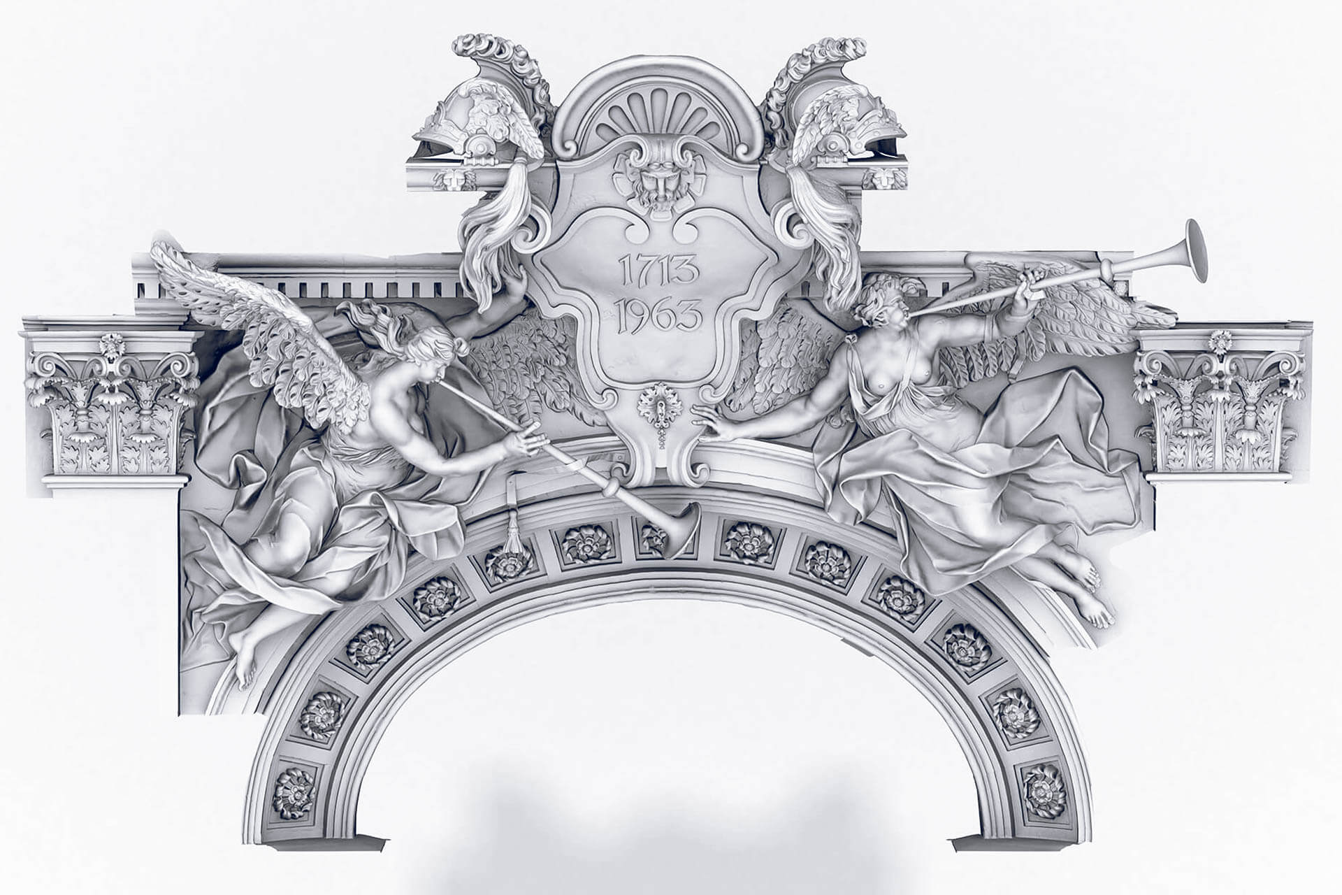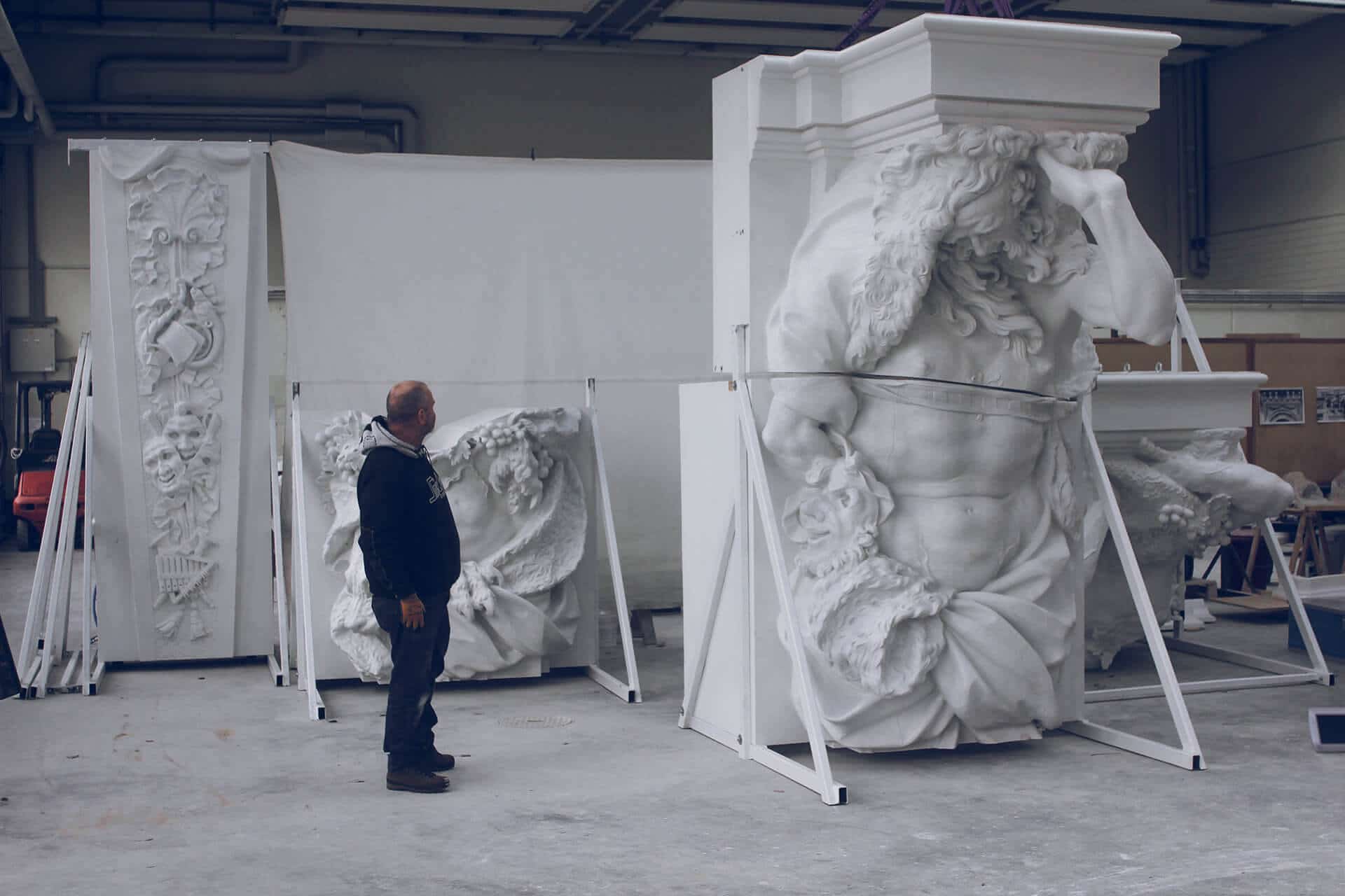 Berlin-based scan specialist TrigonArt is one of the leading companies for these types of projects. The competent 3D measurement team prepared a three-dimensional scan of the object and created an entire high-resolution model of the portal out of the individual scans. In addition, specific areas such as the herms and geniuses were produced as individual 3D models and prepared for physical production purposes. The subsequent creation of the physical models using 3D printing was the task of the voxeljet service center in Augsburg.