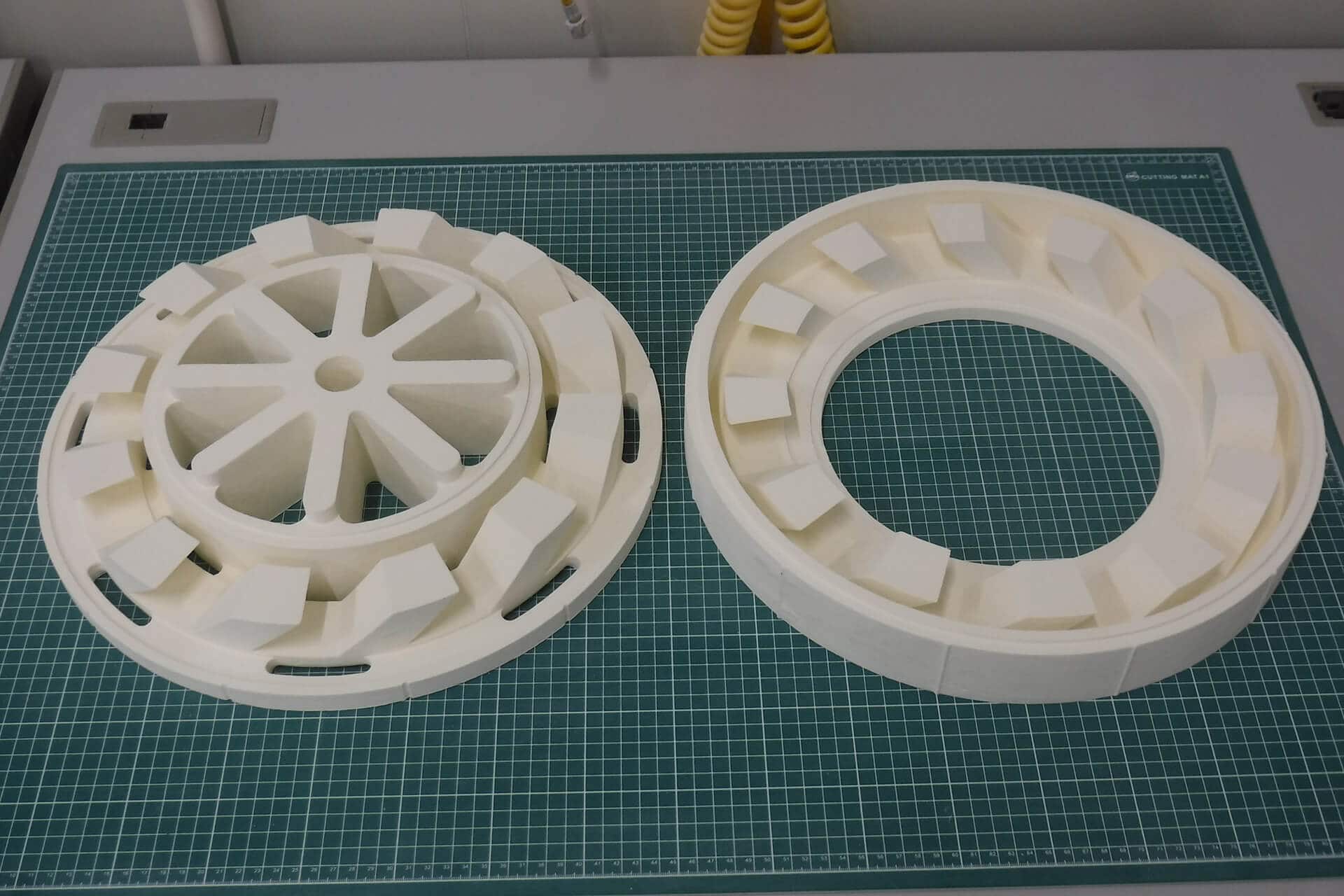 The 3D-printed ceramics are used, for example, as cores for the investment casting process in order to reproduce complex and filigree cavities within castings. In this process, the filigree cores are combined with conventional wax patterns. These are coated with a ceramic slurry and burned out before casting. What remains is a hollow ceramic mold in which the printed core is still inserted. Molten metal is then poured into the mold. After cooling, both the mold and the core are removed.
