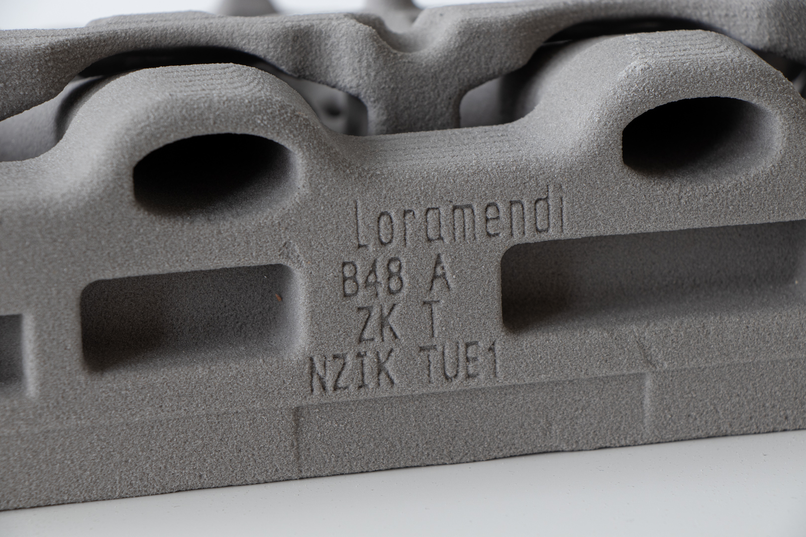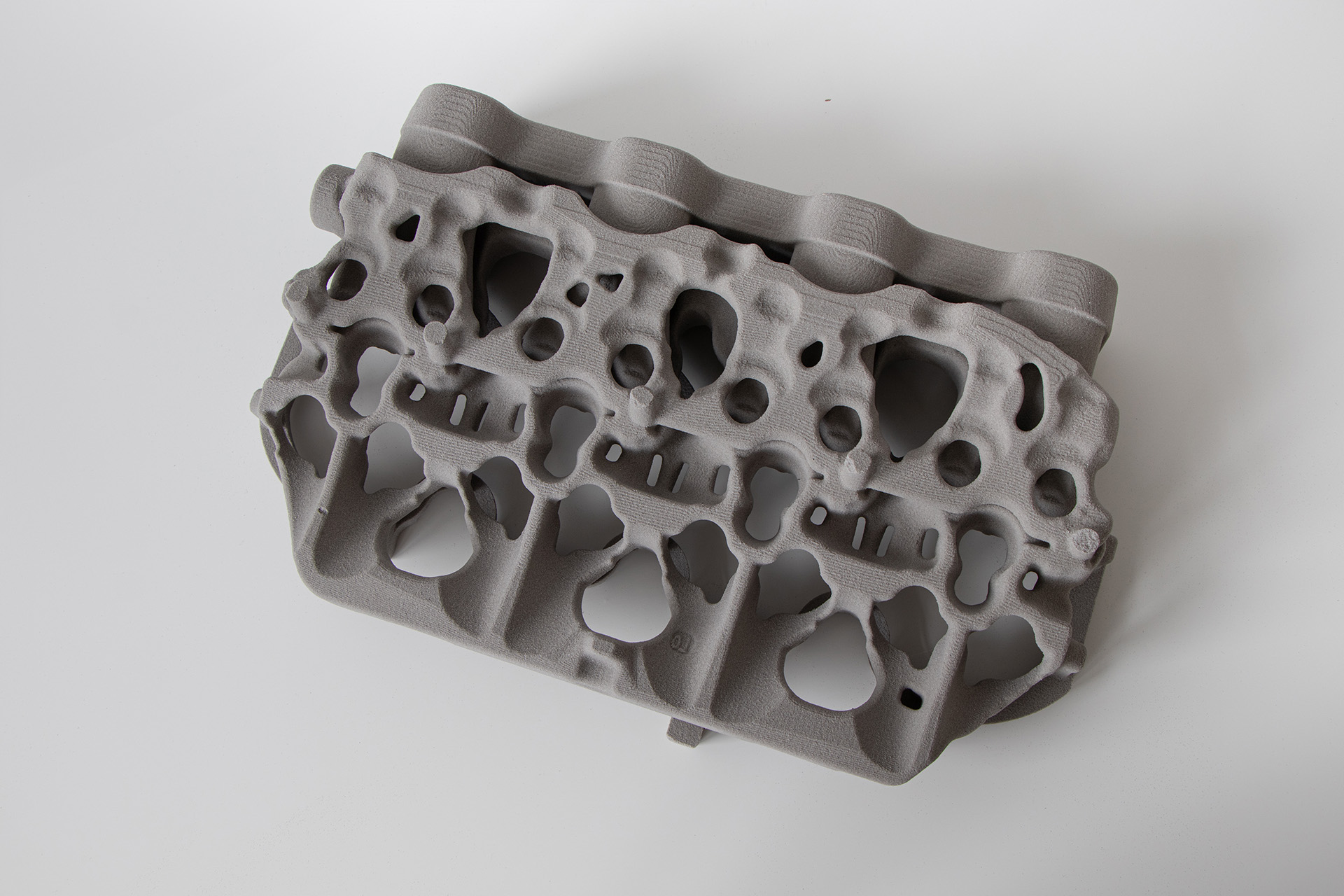 The design of the core is so complex that, due to their undercutting, they have the cores manufactured exclusively by additive manufacturing. The complex design can increase the efficiency of the engine by up to 30%, as the cooling can be placed closer to the combustion chamber, thus optimizing heat transfer. The high volumes customary in the automotive sector and the cycle time of the system were the biggest challenges here.