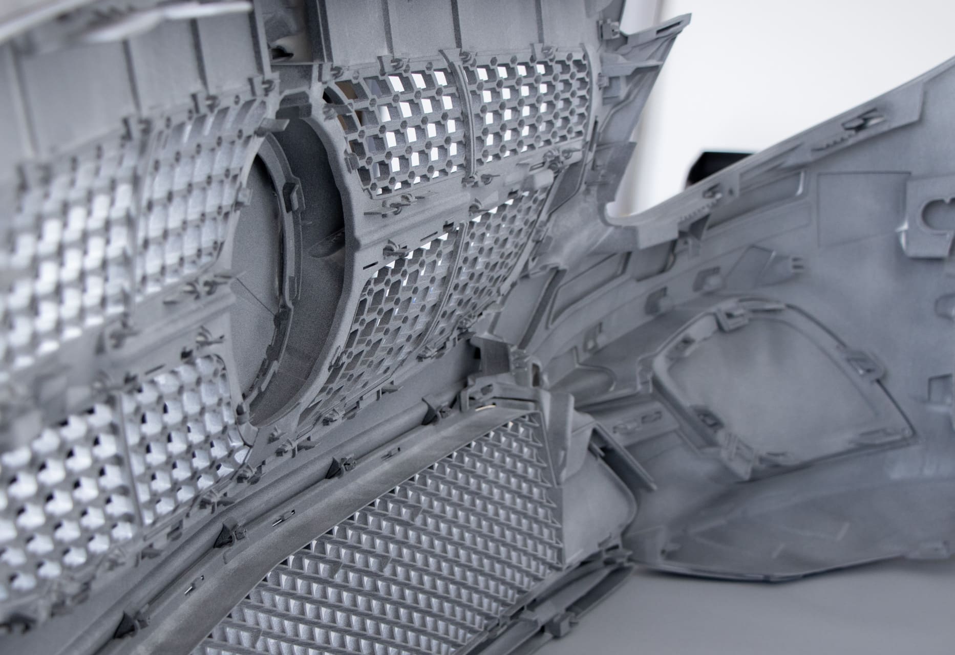 Thanks to its combination of full surface radiation, sophisticated thermal management, industrial print heads, and large build volume, HSS was the perfect choice for large plastic parts such as this bumper.