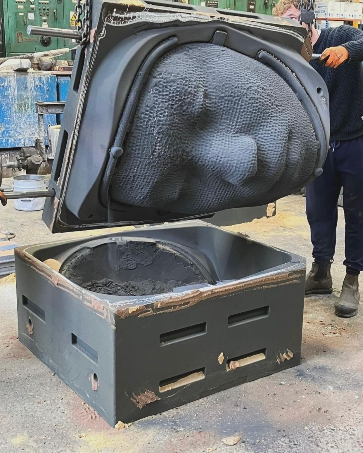 In the conventional process, a model is made from aluminium or wood and then moulded in sand, to which a binder is added, in two mould halves. Cores are inserted into the mould to create cavities. The 3D printing process eliminates the need to produce a model or mould. In 3D sand printing, the negative mould is produced directly. This only requires digital CAD data, which in this case was provided by millimetre. All the individual parts of the sculptures were printed on our largest printing system, the VX4000. The 3D printer works with binder jetting technology, in which the CAD file is broken down into thousands of thin layers. A recoater then applies a wafer-thin layer of sand, which is then selectively printed by a print head. While the smallest details have to be painstakingly worked into the models by hand in the conventional process, 3D printing allows the model to be digitally modified and customised with little effort. This means that even the smallest details and complex designs can be realised.