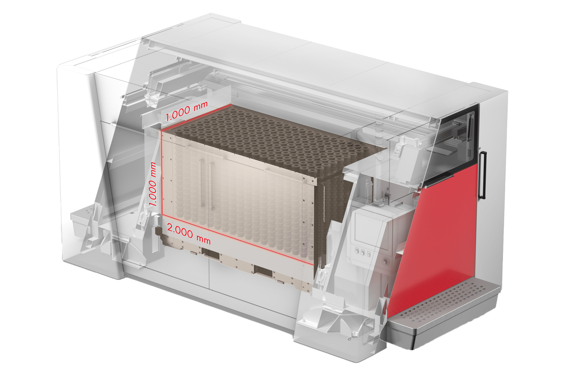 - Mold sizes ranging up to 2000x1000x1000 mm
