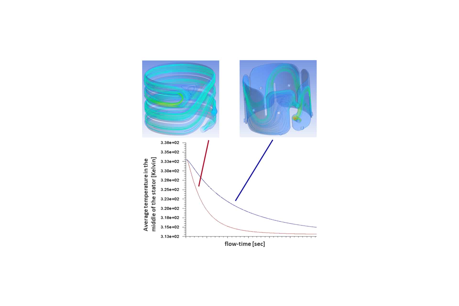 Furthermore, the response time from the interaction of the optimizations is significantly reduced. To present the performance of the system, a CFD simulation of an existing traction motor from a major OEM was compared with the RoBoC Gen2 development. The time for the temperature reduction from 60° to 40°C in the stator could be reduced by about 70%.