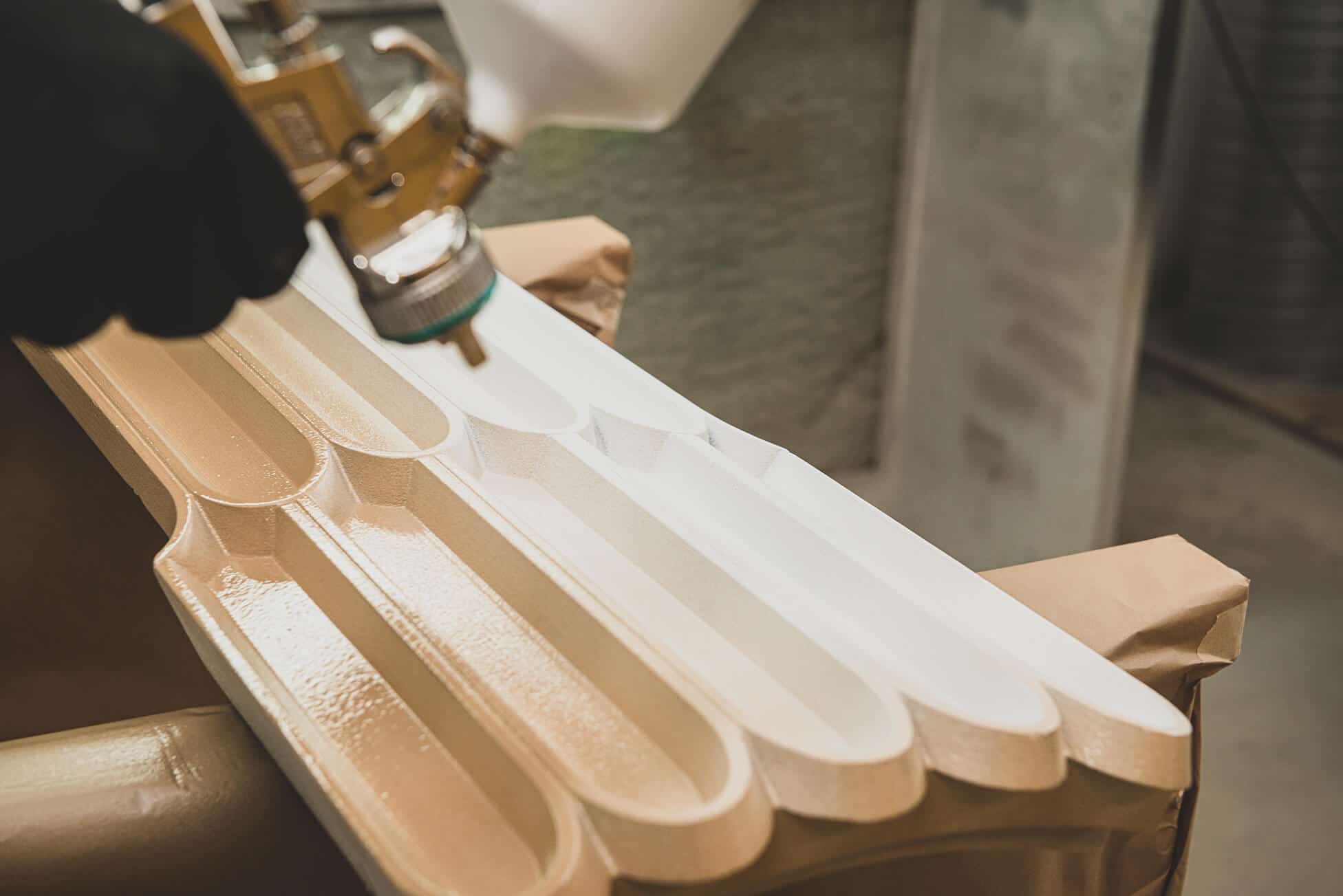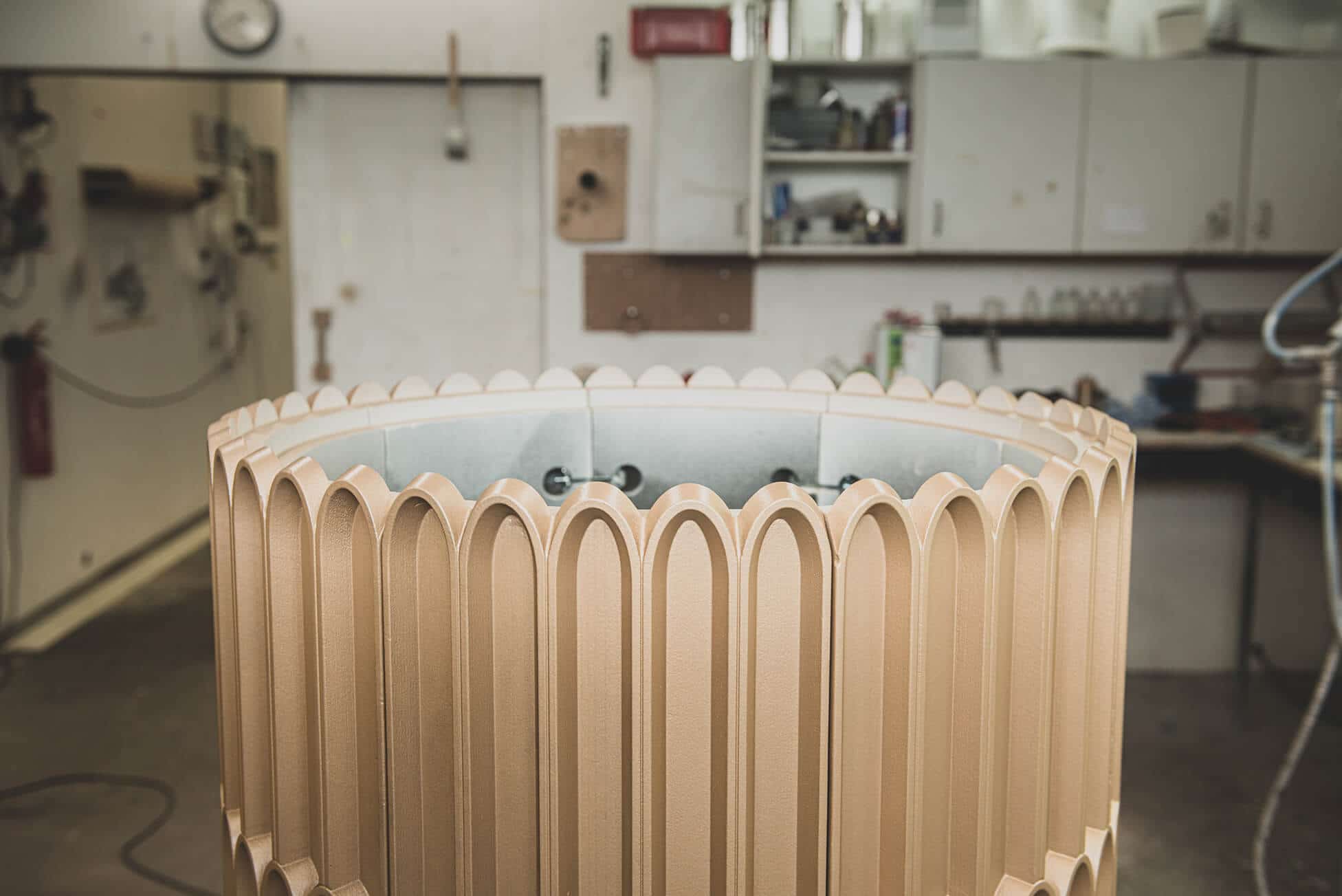 To get as close as possible to the final look of columns, the 3D printed sand parts were reworked in SL Rasch’s in-house model workshop to imitate the look of the later cast aluminum. Multiple sanding, infiltrating, sealing, painting and fogging provided the final appearance, that was very convincing. The design was approved and the actual molds were commissioned for sand casting.